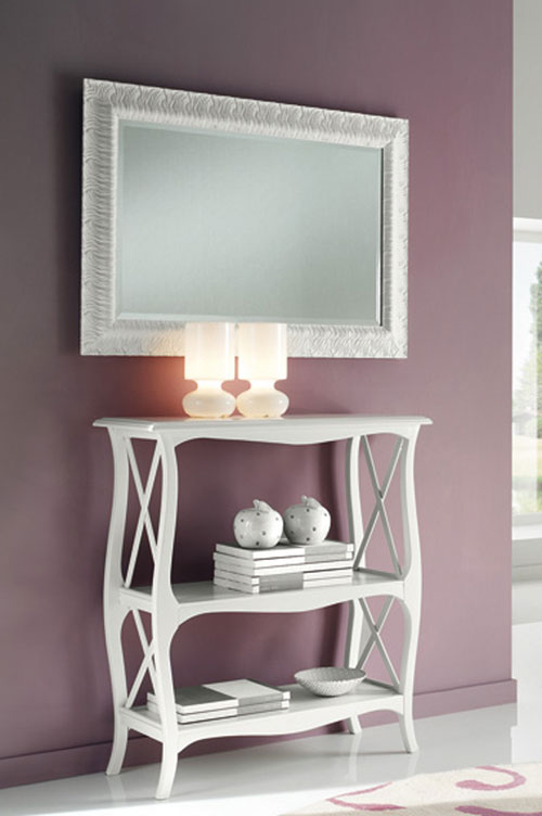 Oglinda alba din sticla incrustata